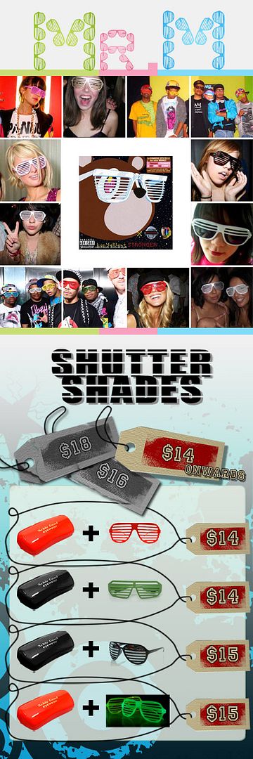 Kanye West is coming to Singapore for his Glow in the Dark tour finally. Go to sistic website to book the tickets BUT sistic doesnt sell you the uber cool shutter shades that everyone will be wearing on that night!