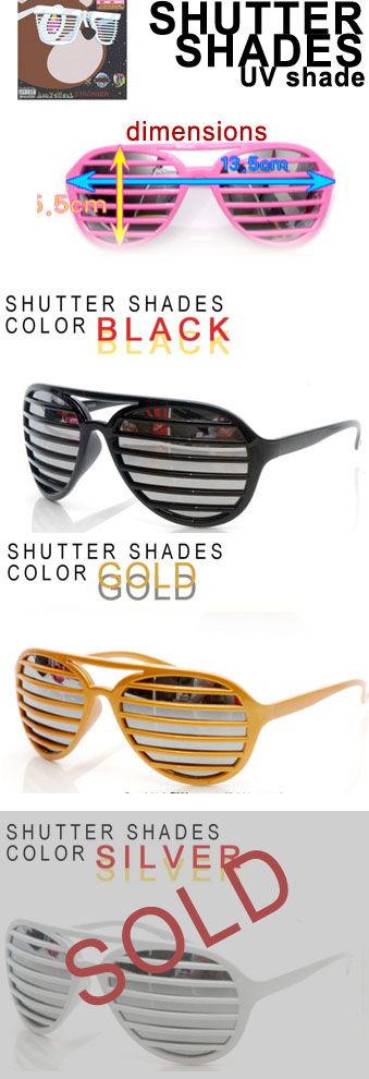 Inspired by the fashion of the 1980's fused with a futuristic touch, Shutter Shades bridge the gap between styles of the past, present and future. Unique in design and function, these shades are in very high demand worldwide.